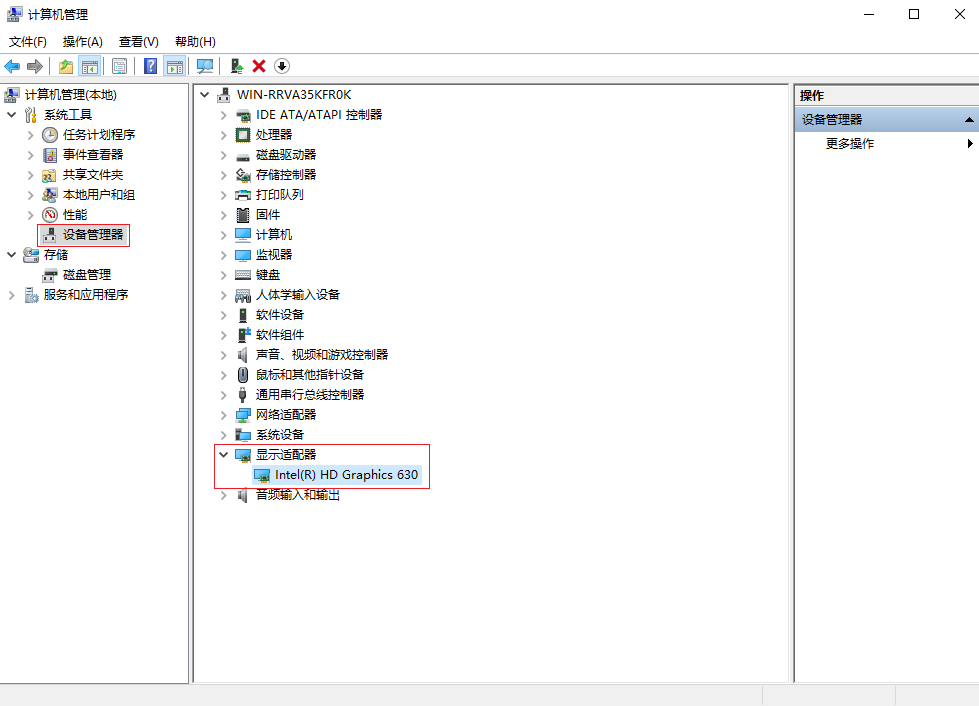 2. 在管理界面中選擇“設(shè)備管理器”,右側(cè)找到“顯示適配器”