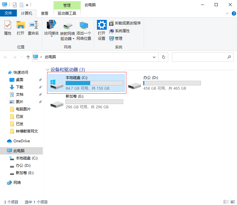 2.點(diǎn)擊C盤(pán)。選擇“屬性”