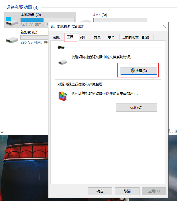 3.進(jìn)入屬性界面,選擇“工具”,點(diǎn)擊“檢查”按鈕