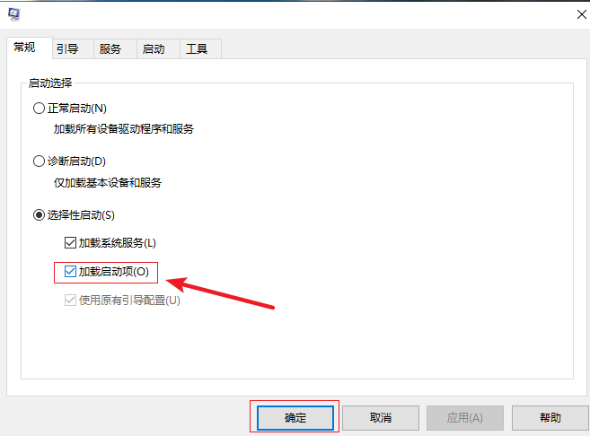 5. 然后進入系統配置界面,將“加載啟動項”一欄取消勾選