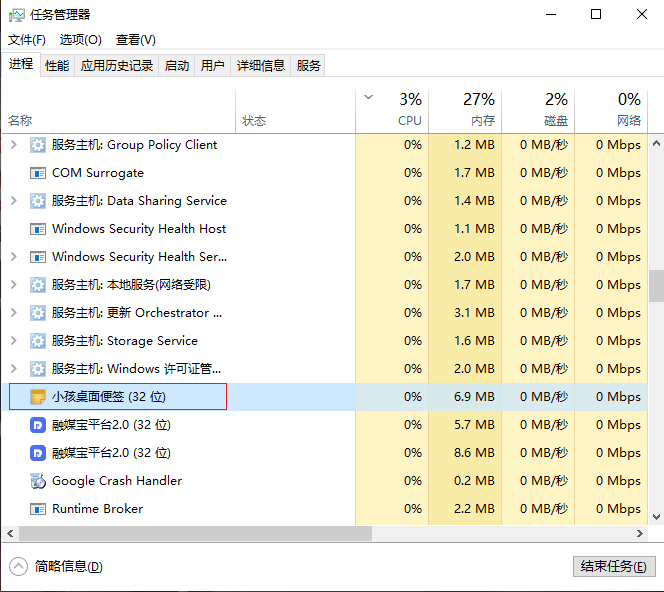 1.按下Ctrl+shirt+esc,打開任務管理器。