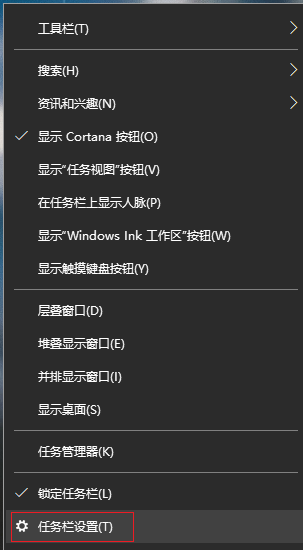 1.在任務(wù)欄空位置上單擊右鍵,選擇“任務(wù)欄設(shè)置”