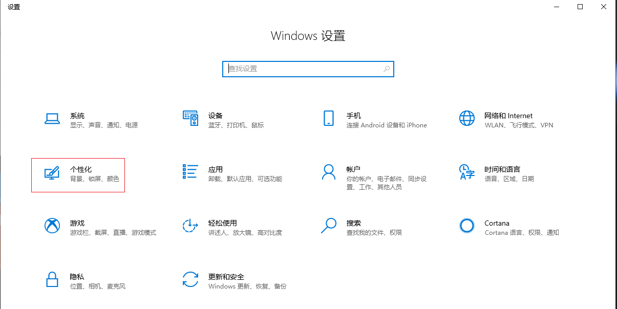 在鍵盤上按下【win+i】組合鍵,調出設置選項界面,然后選擇【個性化】。