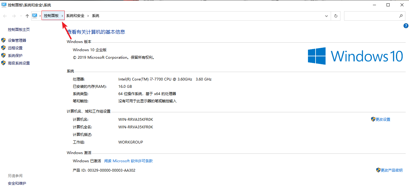 2.點擊進入屬性后,在頂部選擇【控制面板】即可。