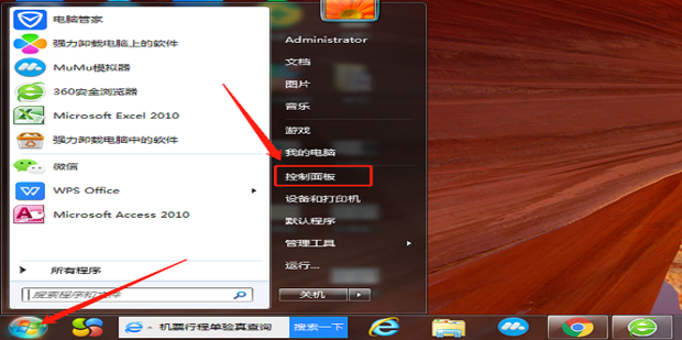 1.在鍵盤上按下【win】鍵,調出開始界面,然后選擇【控制面板】。