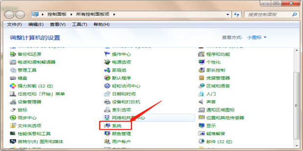 2.進入控制面板界面,下拉找到【系統】。