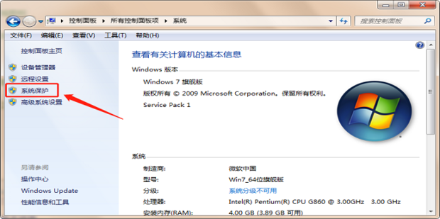 3.點擊【系統保護】。