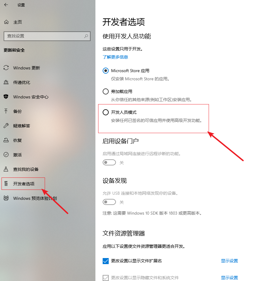 2.進入設置界面,在左側找到并點擊【開發者選項】,在右側選擇【開發人員模式】。
