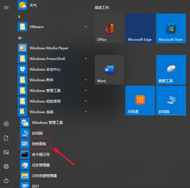 1.鼠標(biāo)左擊開始菜單,下拉找到【W(wǎng)indows系統(tǒng)】,打開,選擇【控制面板】。