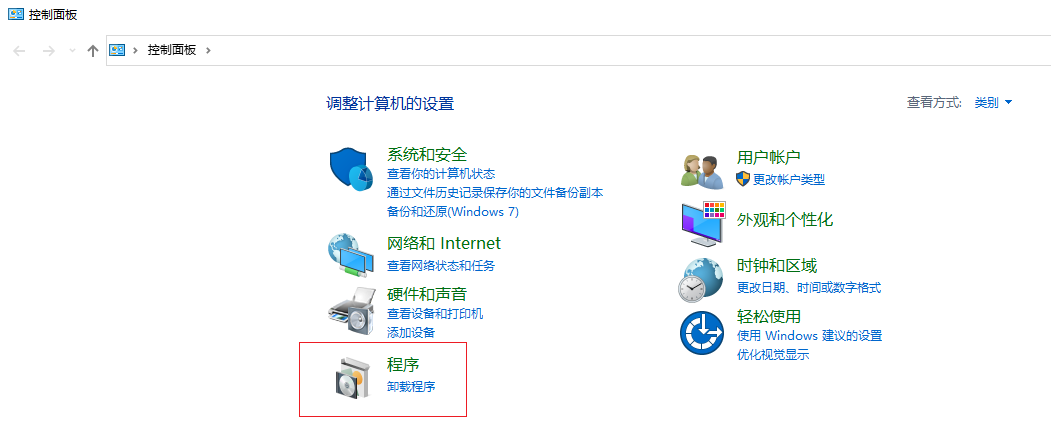 2.進(jìn)入控制面板界面,點(diǎn)擊【程序】。