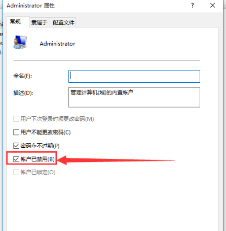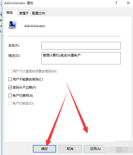 3.把【賬戶已禁用】前的勾取消,然后點擊應用和確定就可以獲得管理員權限了。