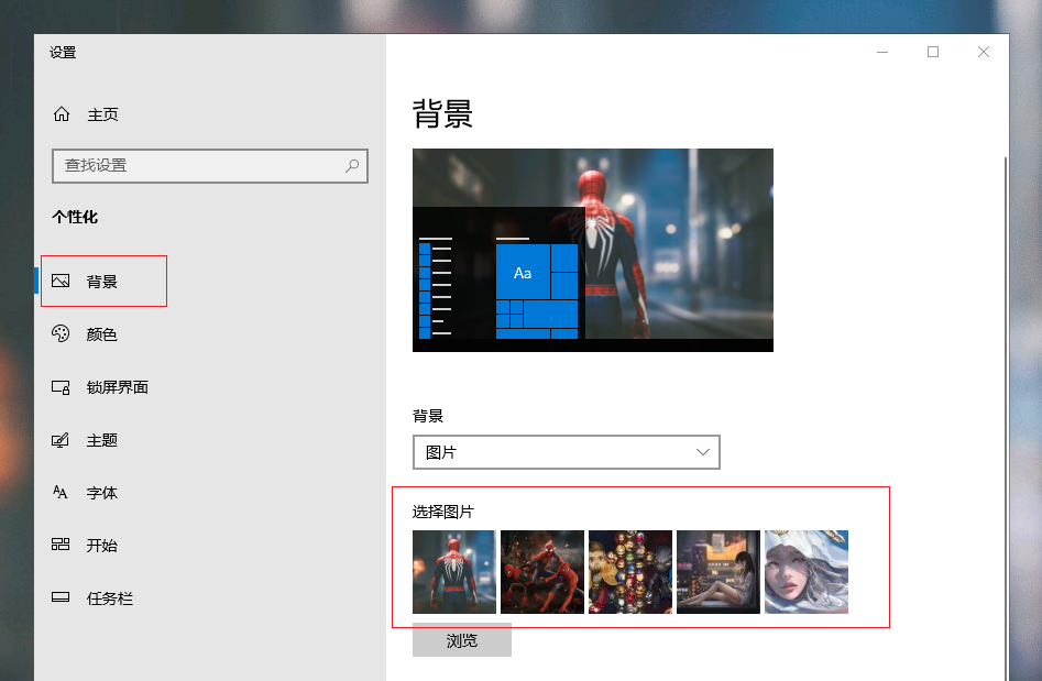 2.進入后在左側選擇【背景】,然后在右側選擇想要作為壁紙的照片就可以更換壁紙了。