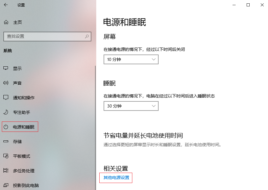 2.進入后,在左側選擇【電源和睡眠】,然后在右側點擊【其他電源設置】。