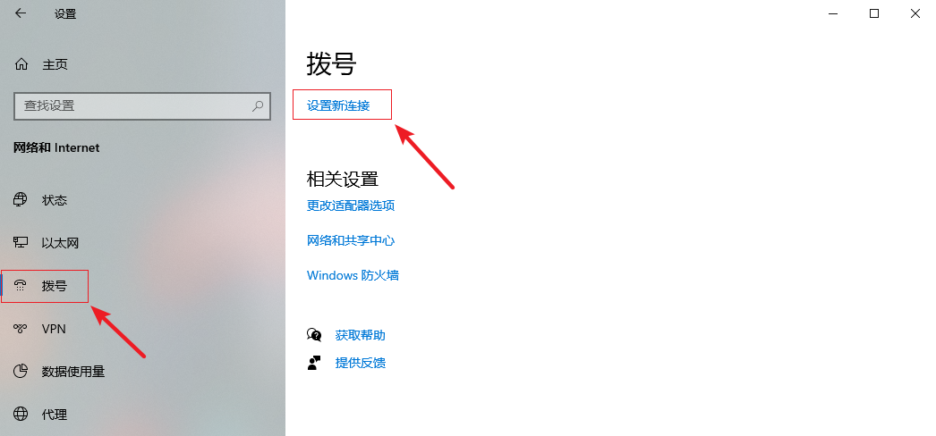 2.進入設置界面,在左側選擇【撥號】,在右側點擊【設置新連接】。