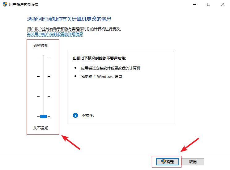 4.在以下界面中,把左側的滑條滑至底部,然后點擊【確定】即可。