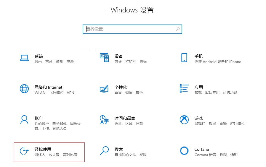 1.在鍵盤上按下【win+i】組合鍵,調出設置選項界面,選擇【輕松使用】進入。