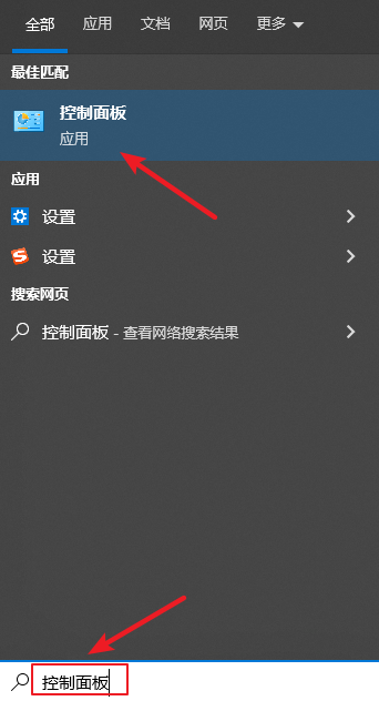 1.在底部搜索欄輸入【控制面板】,然后點擊進入控制面板。