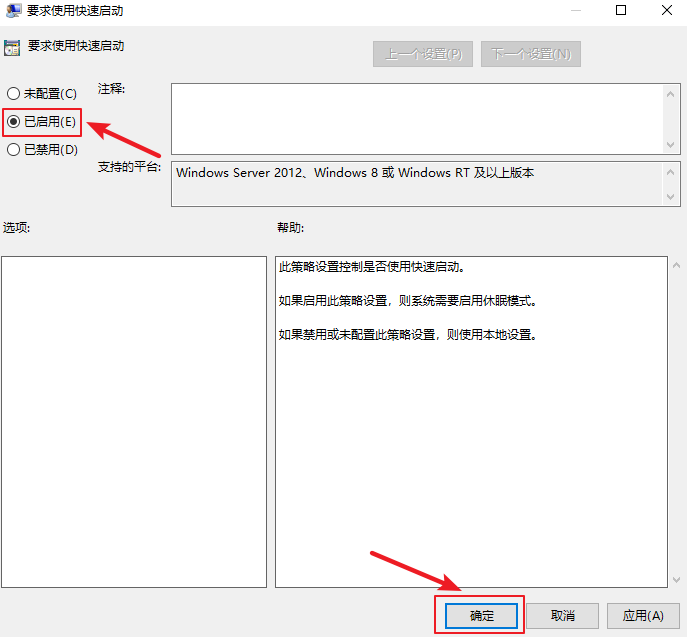 3.在彈出的窗口選擇【已啟用】,然后點擊下方的【確定】按鈕即可。