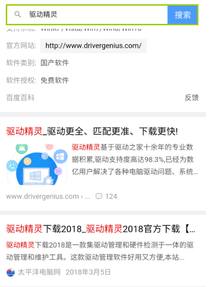 1.首先在安卓手機(jī)上的“瀏覽器”打開百度搜索“驅(qū)動精靈”選擇驅(qū)動精靈進(jìn)入