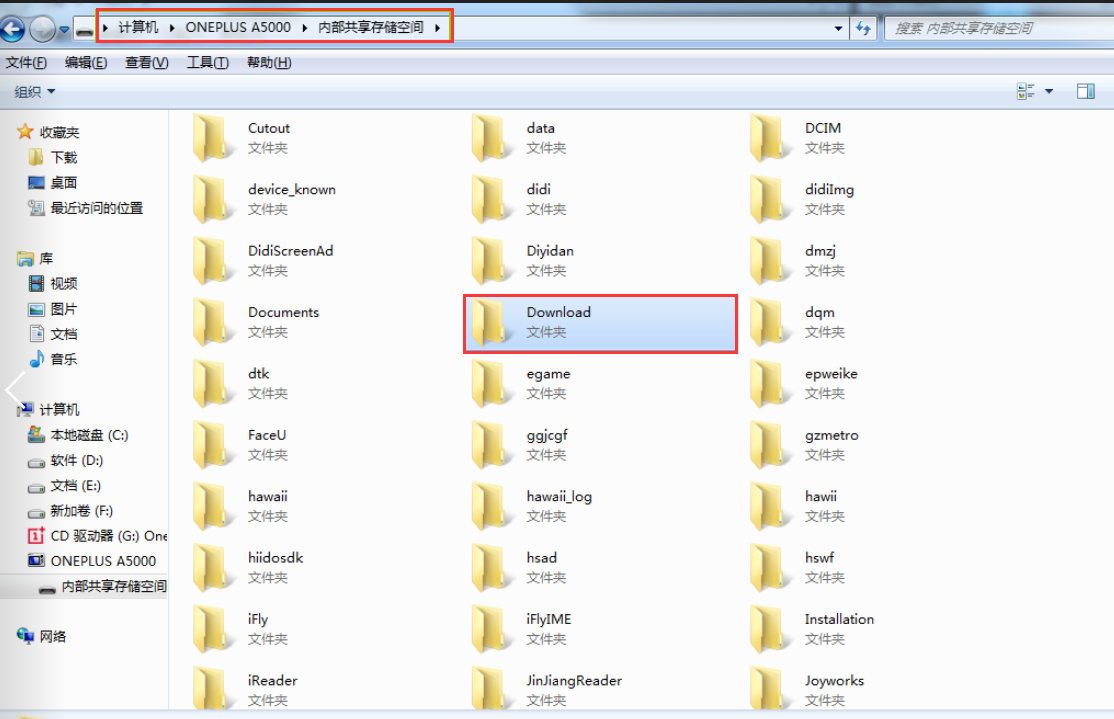 7.進(jìn)入到手機(jī)文件目錄,找到下載的文件所在目錄,雙擊打開