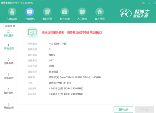 3.U盤啟動盤也無法進行制作,則更換其他網絡,再嘗試一鍵裝機或者制作U盤啟動盤。