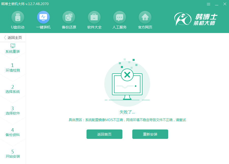 2.下載其他系統也MD5不正確,則嘗試制作U盤啟動盤,試試能否正常制作。制作成功后,使用U盤啟動盤進行重裝。