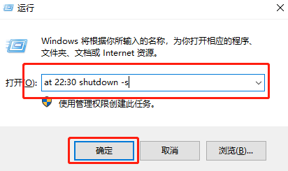在鍵盤上按下“win”+“R”按鍵調出運行窗口,隨后輸入命令“at 22:30 shutdown -s”回車或者點擊“確定”即可。其中的22:30為關機時間,大家可以根據自身需要進行修改。