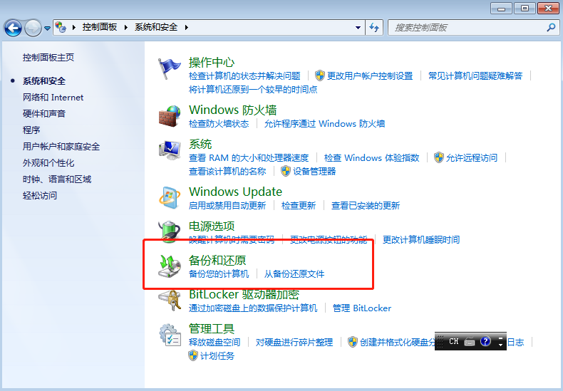 3.開始選擇“備份和還原”進(jìn)入;