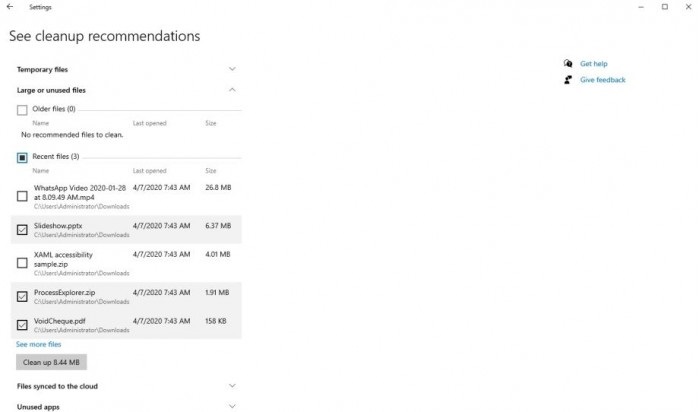 在20H2更新中,Windows將所有大文件收集在一個頁面中,然后單擊幾下即可輕松刪除它們。