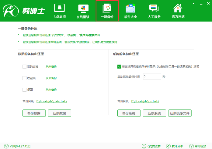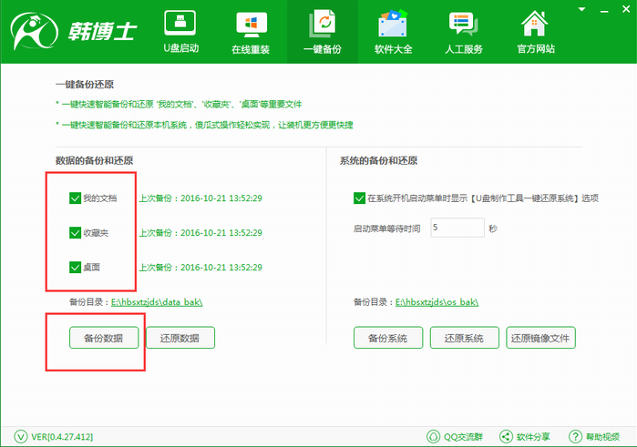 韓博士一鍵備份還原系統之備份我的文檔電腦里面的“我的文檔”是一個很方便的存儲用戶資料的地方,為了防止資料的丟失,應該對“我的文檔”進行及時的備份。那么如何備份我的文檔呢?今天韓博士與大家分享一個備份我的文檔的方法,有需要的不妨看看。