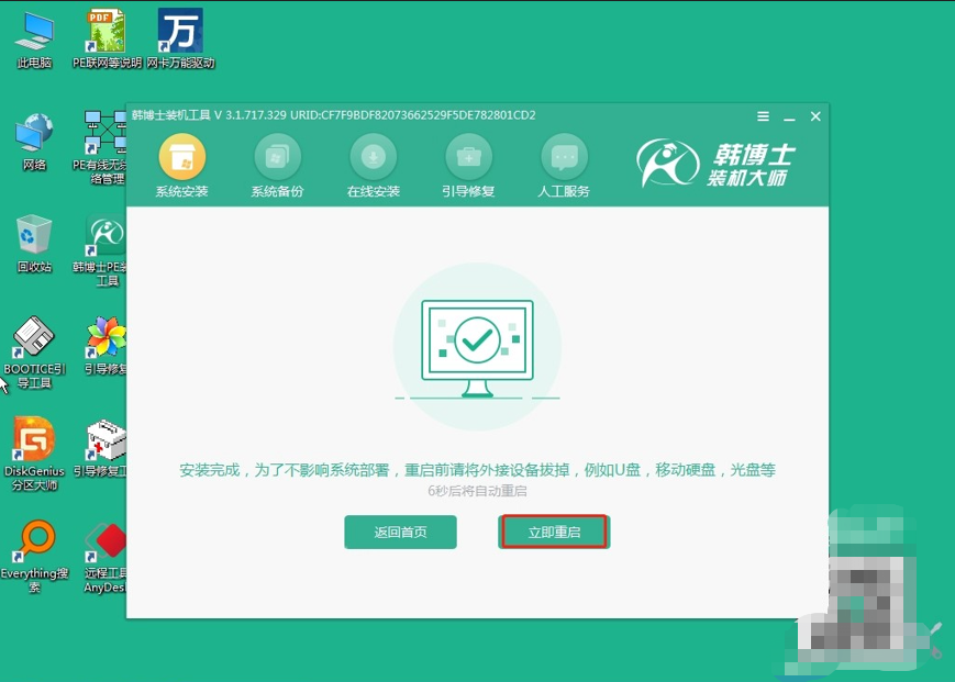 5.系統正處于部署安裝環境的步驟中,請您在此期間不要進行任何操作,等待它結束后請點擊“立即重啟”。