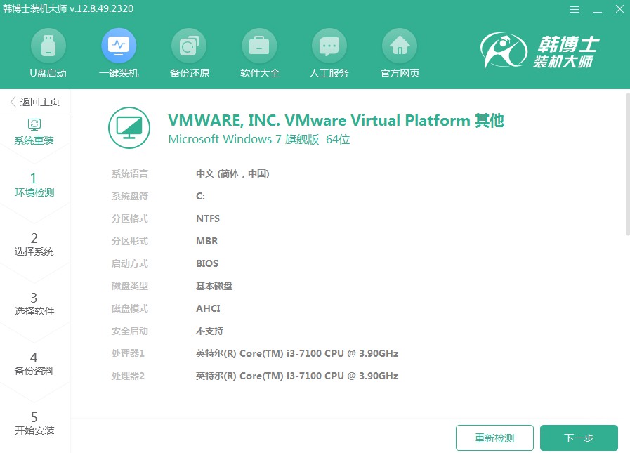 第二步,系統正在進行環境檢查,您可以放心等待。檢測完成后,點擊“下一步”繼續操作即可。