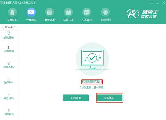 1.先訪問官網,下載“韓博士裝機大師”,并將其放置在桌面上。完成下載后,雙擊桌面上的圖標來啟動程序。在主界面中,點擊“開始重裝”。