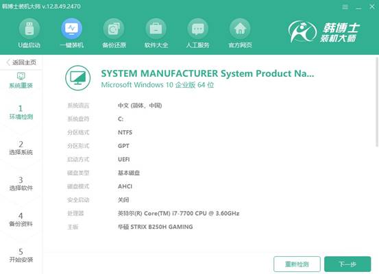 2.韓博士會首先進行系統環境檢查,等到檢查完成后,您只需要點擊“下一步”。