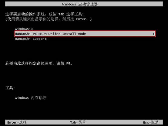6.在這個步驟,您可以用“↑”和“↓”鍵來選擇不同的選項。當您找到第二個選項時,按回車鍵,系統會自動進入PE模式。