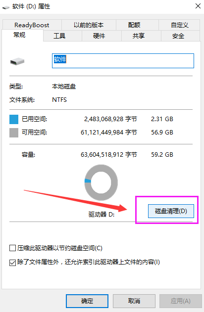4.右鍵電腦C盤打開屬性窗口,直接進行磁盤清理。