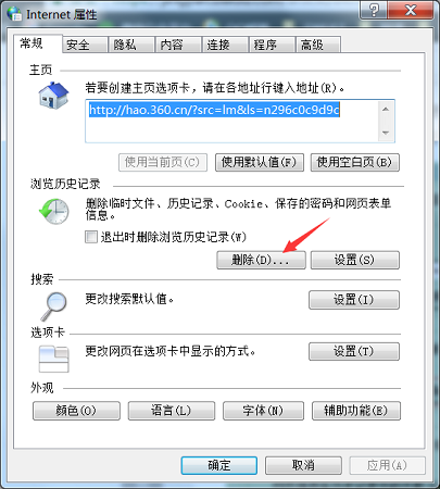 2.在彈出來的設(shè)置頁面中,點擊【刪除瀏覽歷史記錄】。