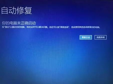 1.長按按電源按鈕開機(jī),重復(fù)步驟3次左右,系統(tǒng)會跳到自動修復(fù)界面,點(diǎn)擊【高級選項(xiàng)】。