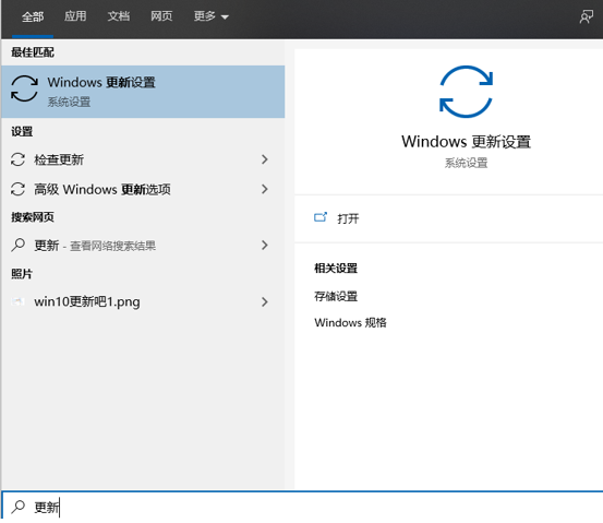 在下方的搜索框輸入【更新】,然后點(diǎn)擊第一個【檢查更新】。