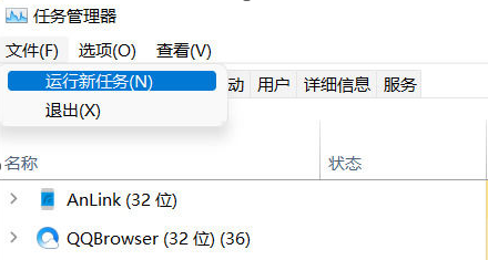 2.進(jìn)入任務(wù)管理后,點(diǎn)擊【文件】,選擇【運(yùn)行新任務(wù)】。