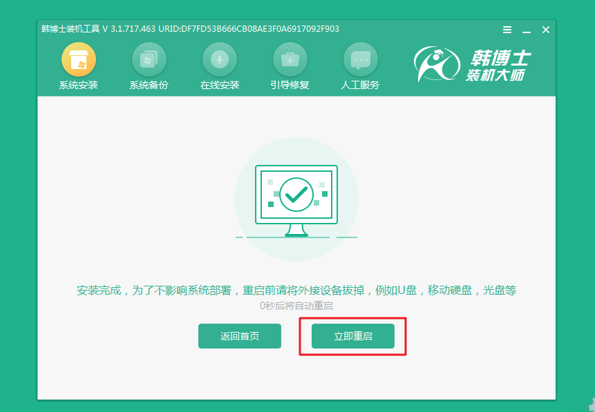 8.系統安裝完成后,點擊“立即重啟”。