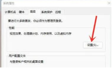 4.進入高級系統設置后,在性能中選擇“設置”。