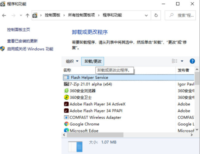 3.在安全模式內,打開“控制版面”,進入“卸載或更改程序”界面,然后找到近期安裝的軟件或者更新,全部卸載刪除,再次重啟電腦即可解決win11藍屏問題了。