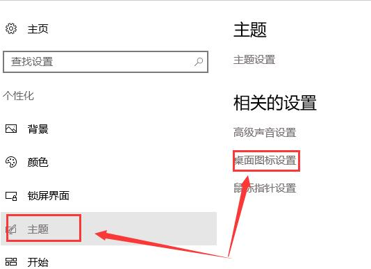 2.選擇“主題”,并找到“桌面圖標設置”,點擊進入。
