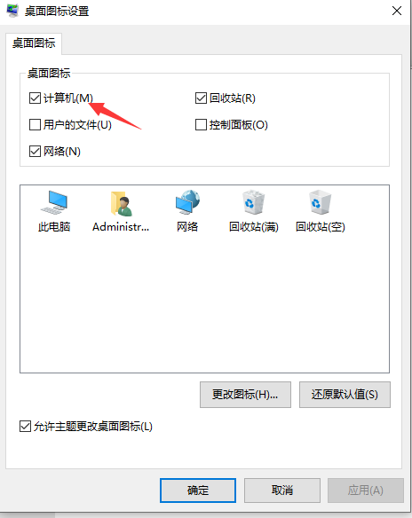 3.在桌面圖標界面,我們找到“計算機”選項,打上勾,再點擊下方的“確定”即可。