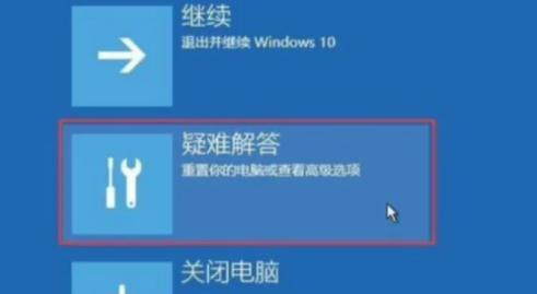 1.強(qiáng)制重啟電腦,重復(fù)操作三次,出現(xiàn)高級(jí)修復(fù)選項(xiàng),點(diǎn)擊“疑難解答”。