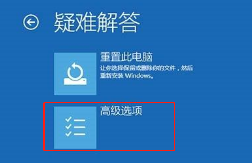 2.進入疑難解答界面后,點擊“高級選項”。