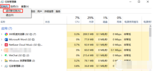 3.選中“explorer.exe”,并點(diǎn)擊結(jié)束進(jìn)程。然后點(diǎn)擊左上角的“文件”-“運(yùn)行新任務(wù)”。
