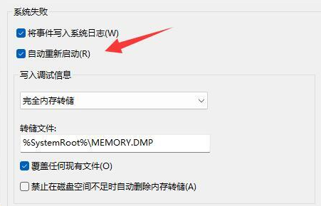 3.然后就可以把“自動(dòng)重新啟動(dòng)”選項(xiàng)前面的勾給取消。