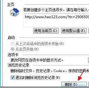 3.點擊“刪除”,等清除完win7系統瀏覽器上的歷史記錄后,再次開機就不會出現藍屏錯誤了。
